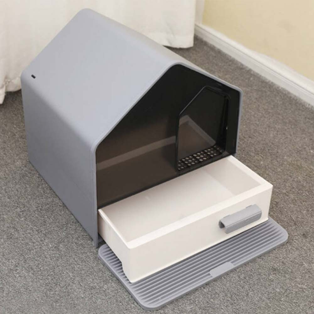 Ev şeklinde Kaşık/kürek ile ABS şeffaf pencere ve çekmece Pedallı Kapalı Kedi Tuvaleti MSP-110 46*41*46